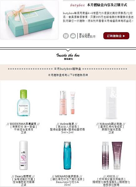 Butybox的網站,提供試用體驗盒可以購買。