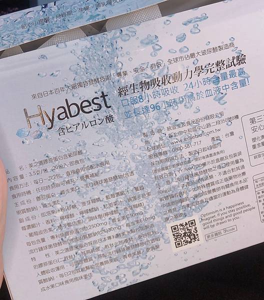 一盒20包,每包含有滿滿的2500mg膠原蛋白、30mg玻尿酸(95%)、50mg維生素C、10mg維生素E