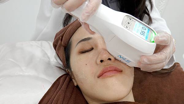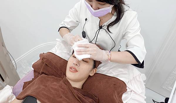 針對輪廓線繼續一個加強,我選擇中下臉300條,美容師在課程前會先洗卸、再進行敷麻。